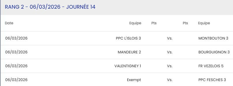 D3 phase 2, 14ème journée / Contre Mandeure