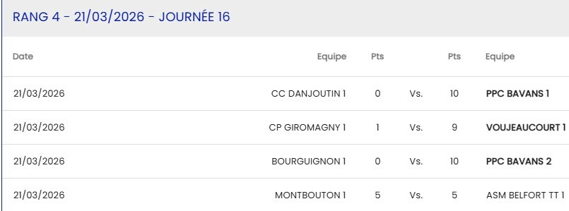 Cadets -15 Phase 2, 16ème journée / Contre Bavans