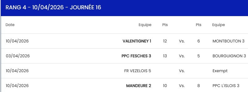 D3 phase 2, 16ème journée / Contre Fesches-le-Châtel