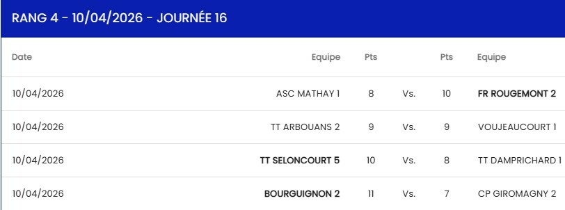 D1 phase 2, 16ème journée / Contre Giromagny